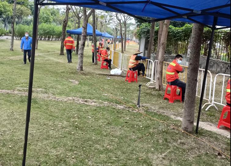 为配合香洲区做好疫情防控工作,农控集团紧急响应,于14日下午2:30迅速组织150人分批次一日三班支援南屏拜瑞口腔公司外围防护,24小时值守。