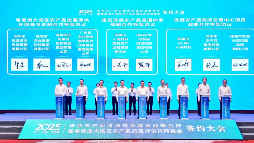 6月23日,珠西农产品流通体系建设战略合作暨粤港澳大湾区农产品流通保供环网基金签约大会在珠海成功举行,标志着以珠海为核心枢纽、覆盖珠江西岸和粤西地区的现代化农产品流通体系正式进入实质性建设阶段,农控集团与合作方共同推进的珠西农产品流通体系首发项目——珠西农产品物流交易中心项目正式签约。