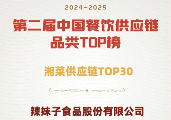 近日,木瓜视频 控股辣妹子食品股份有限公司凭借在湘菜餐饮行业供应链领域的稳健表现,成功入选第二届《中国餐饮供应链品类》TOP榜单,这一荣誉不仅体现出辣妹子产品在餐饮供应链行业的不俗表现,也是餐饮行业对辣妹子在供应链领域成就的重要认可。