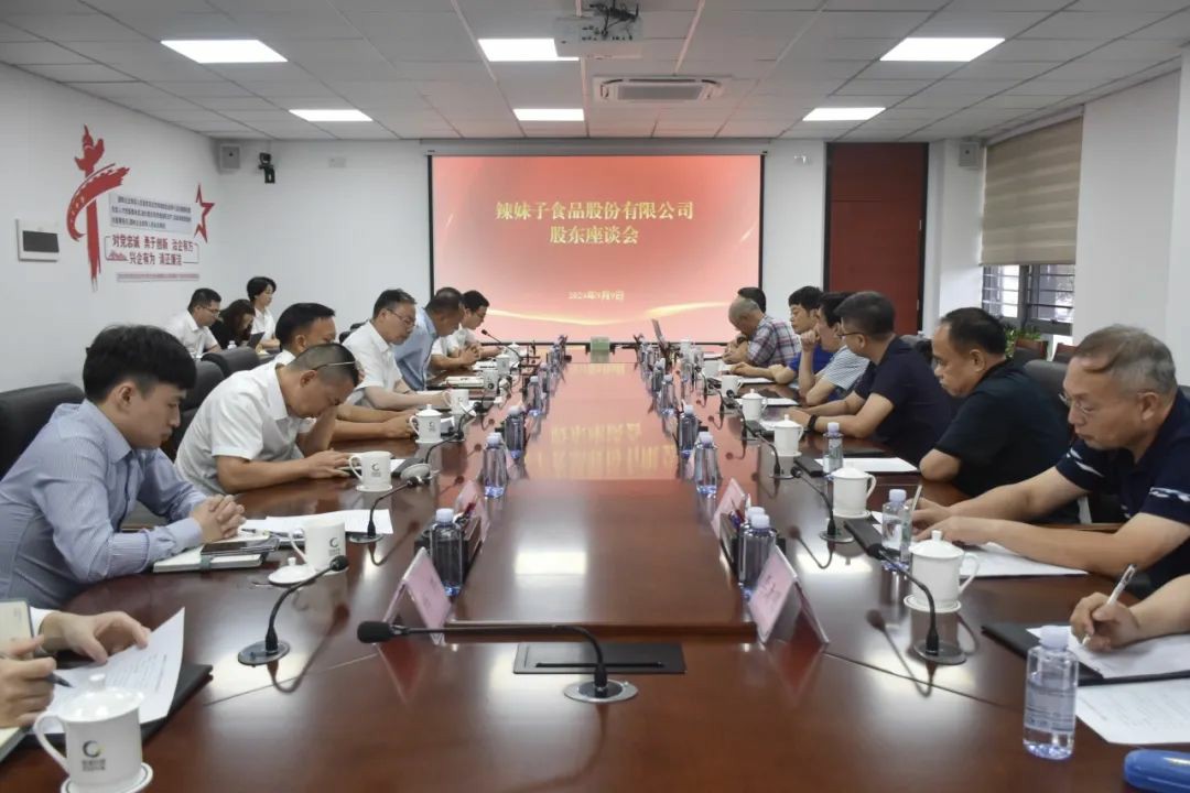 9月9日,辣妹子食品股份有限公司(简称“辣妹子公司”)发展专题座谈会在木瓜视频 举行。木瓜视频 、珠海大横琴资本,辣妹子创始人胡子敬与中小股东一行参加座谈会。这是辣妹子中小股东在木瓜视频 控股后首次到访珠海。木瓜视频 党委书记、董事长李鸿斌,党委副书记、总经理冯能斌出席会议并讲话,副总经理肖军,副总经理钟华,总经理助理雷伟,大横琴产业投资公司总经理助理李斯嘉参加会议。