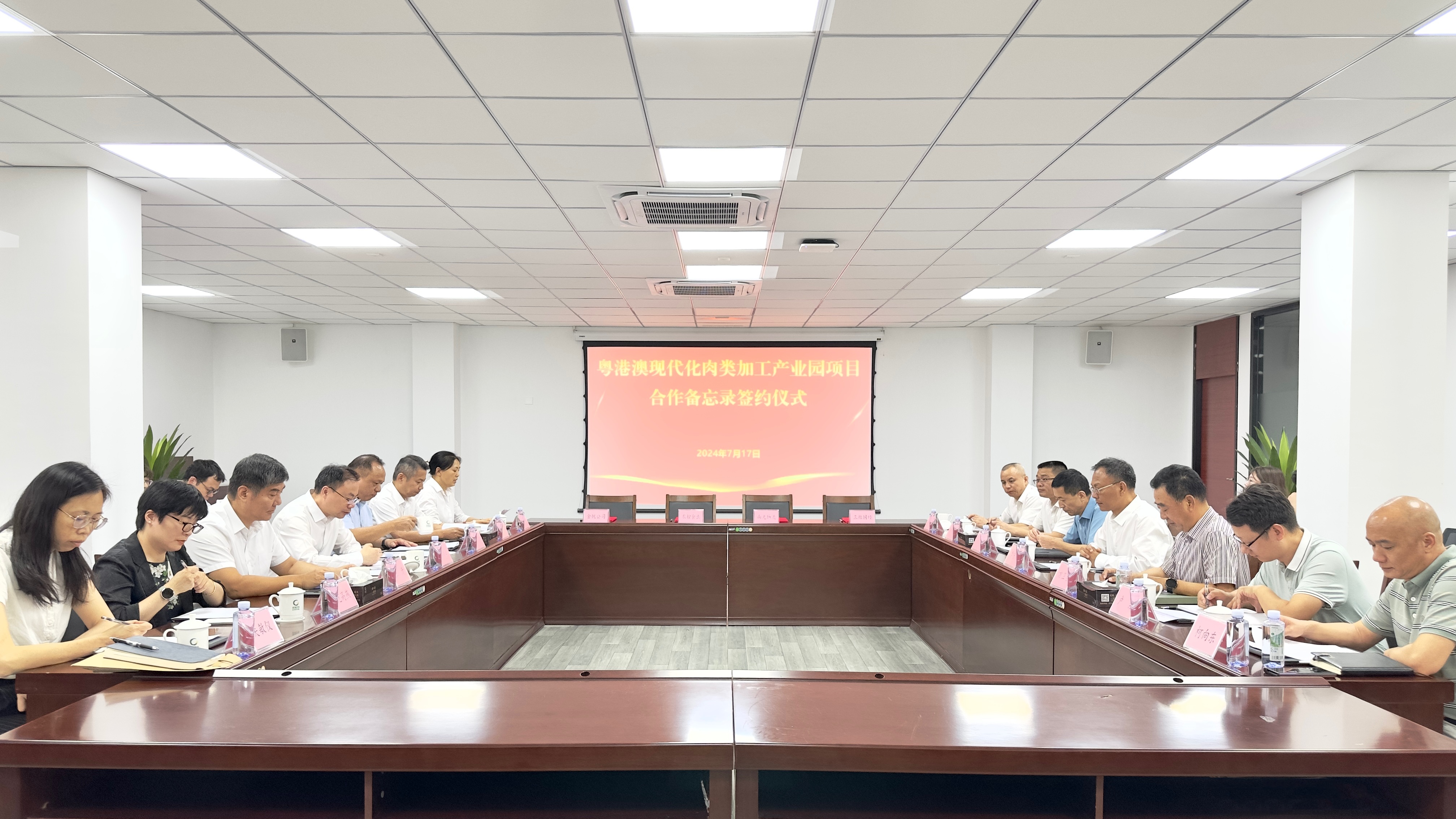 2024年7月17日下午,木瓜视频 下属珠海食出公司与南光物流公司、金悦公司、三灶国经公司共同在木瓜视频 会议室举行了粤港澳现代化肉类加工产业园项目合作备忘录签约仪式,就合力构建珠海现代化规模化屠宰加工平台达成战略合作意向。