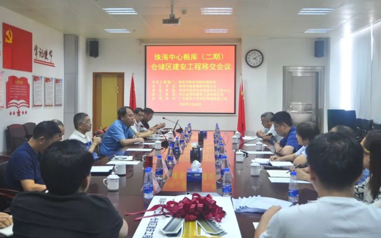 7月28日,珠海中心粮库(二期)仓储区建安工程移交仪式在珠海市粮食集团有限公司会议室举行。市粮食和物资储备局四级调研员黄振标,市粮食集团董事长王小彬、总经理杨智勇,市政府投资房建项目工务中心副主任陈斌及相关负责人参加活动。