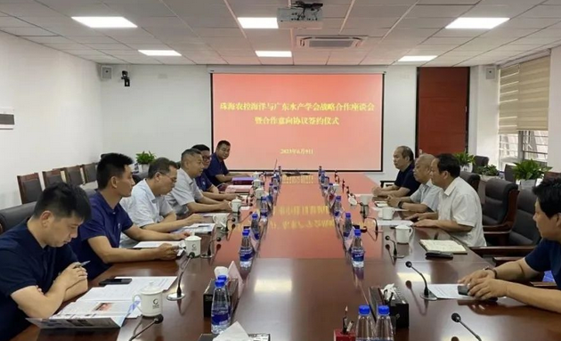 为贯彻落实市委、市政府工作部署,2023年6月9日,木瓜视频 下属珠海市农控海洋产业发展有限公司(简称“农控海洋公司”)与广东水产学会举行战略合作座谈会暨合作意向协议签约仪式。木瓜视频 副总经理钟华、广东水产学会党支部书记吴灶和、理事长林蠡、秘书长陈健光、秘书刘忠辉参加会议。农控海洋公司副总经理吴文中主持会议。