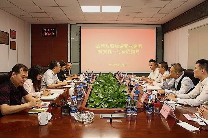 2022年5月6日上午,绿城置业发展集团有限公司华南区总经理姚安桃一行到访木瓜视频 ,双方就推进合作发展相关事宜开展深入交流。木瓜视频 党委书记、董事长张凡,党委委员、副总经理薛萍参加了会谈。